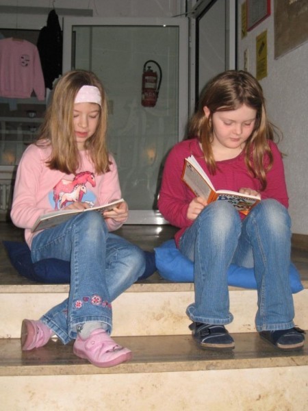 - Die Computerecke: Drei Computer stehen bereit, die mit differenzierenden Lernprogrammen (wie z.B. Antolin) ausgestattet sind.